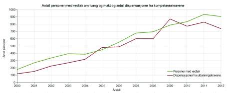 Når det skal anvendes tvang og makt, er det et krav til tjenesteyternes kompetanse. Imidlertid synes dispensasjonene å være mer utbredt enn kompetansen.